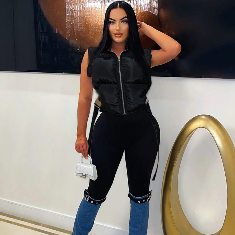 Elevate your style with this chic stand collar vest coat, featuring a sleek zipper closure and eye-catching metal buckle strap details. Crafted with premium cotton filling, this padded coat offers both warmth and fashion-forward appeal. Perfect for layering, it combines comfort and sophistication for any occasion.