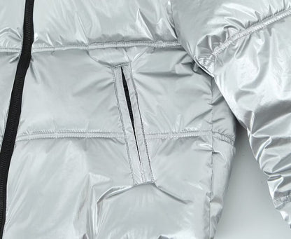 A sleek short jacket with thick cotton material, accented by metallic details.